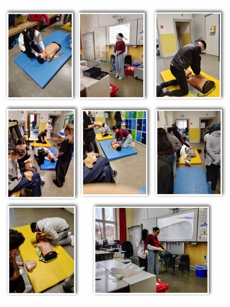 Am Samstag, den 14. März, kam die Klasse 9b in die Schule, um an einem Erste-Hilfe-Kurs teilzunehmen. Obwohl der Kurs an einem Wochenende stattfand, waren alle motiviert und interessiert.